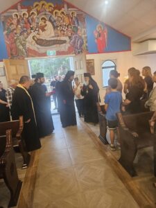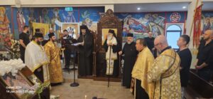 Архиепископот г. Василиј, протоереј Митко Мачевски и останатите свештенослужители од Антиохиската Црква како и верниците со радост му посакаа топло „Добредојде“ на нашиот Митрополит г. Петар му го честитаа јубилејот 30 години архиереј во Австралија и Нов Зеланд и благочестиво сите се помолија на Господа Спасителот наш Исуса Христа.
